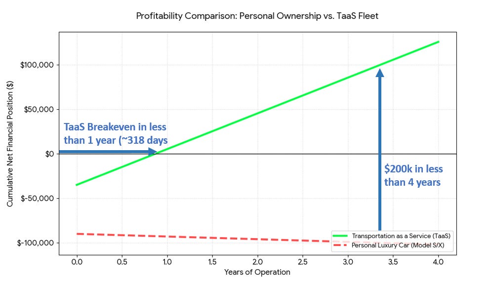 By transitioning to a fleet of autonomous taxis, Tesla aims to make a vehicle pay for itself within its first year of operation. The car is no longer a “product” to be pampered; it is a high-yield utility that works 16 hours a day, effectively turning the automotive business into a utility service.