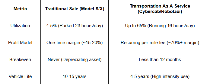 This is the most significant financial pivot in Tesla’s history. Building a car is expensive and yields a one-time profit margin. Selling a transportation service is a recurring revenue goldmine.